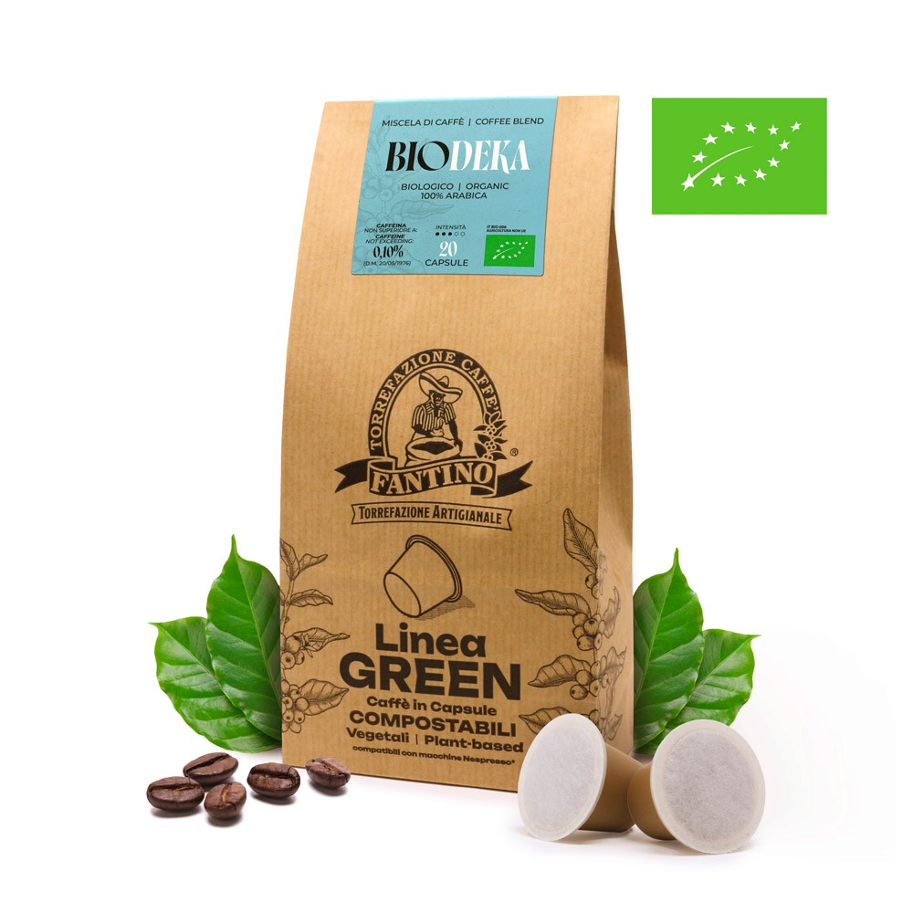 The CO2 decaffeination method used, allows you to not affect the organoleptic qualities of this beautiful mixture.compostable and biodegradable, completely plastic-free and alluminium free - 0% plastic, 0% aluminium