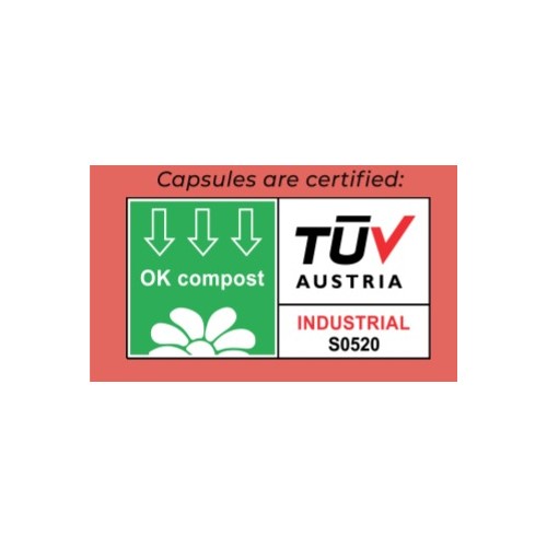 Our capsules are OK Compost Industrial certified by TUV Austria, which guarantees the quality and sustainability of the materials used.